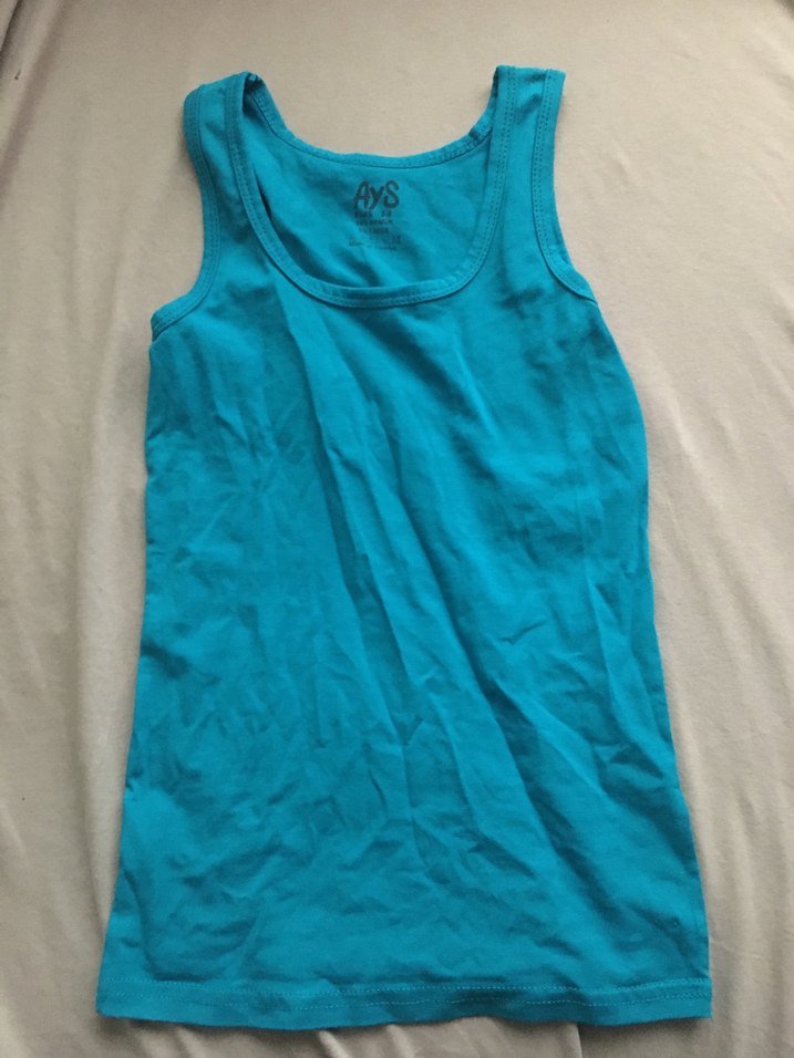 Mavi renkli, keten kumaştan, ince kesim ve yuvarlak yakalı kadın atlet. Spor ve sokak stili için uygundur. ♀️8-9 yaş yazıyor