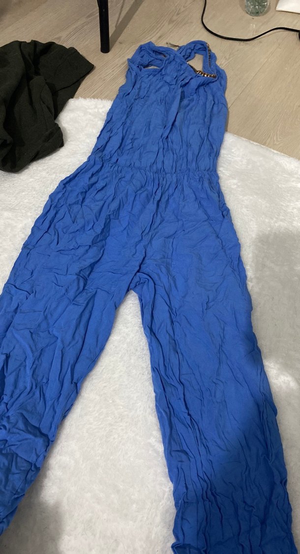 Mavi Keten Kadın Midi Tulum - Görsel 2