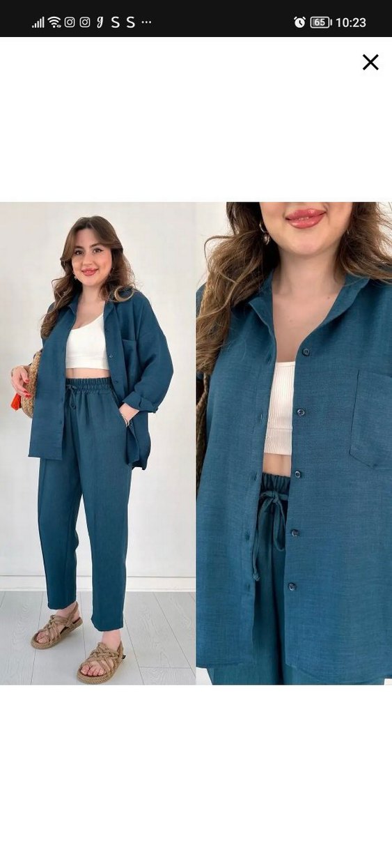 Mavi Keten Kadın Salaş Takım