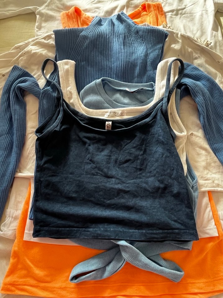 Mavi keten kumaştan yapılmış, askılı, kısa kesim ve vücuda oturan kadın atlet. Rahat ve şık, günlük sokak stili için uygundur. Temiz sorunsuz s beden marka temsili