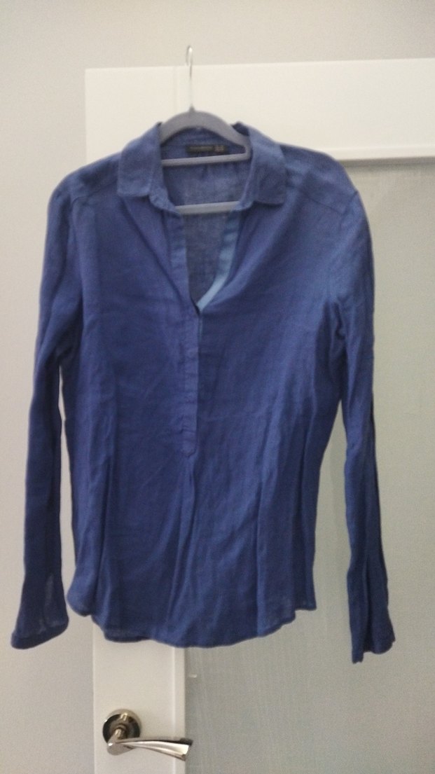 Mavi Keten Uzun Kollu Kadın Gömlek