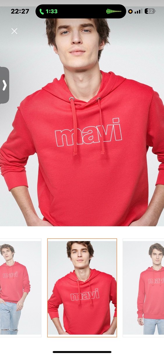 Kırmızı kapüşonlu, uzun kollu ve bol kesim sweatshirt. Önünde renkli "mavi" baskı bulunur. Yumuşak ve sıcak kumaştan, günlük kullanım için uygundur. Eşim kilo aldığı için satıyorum tertemiz