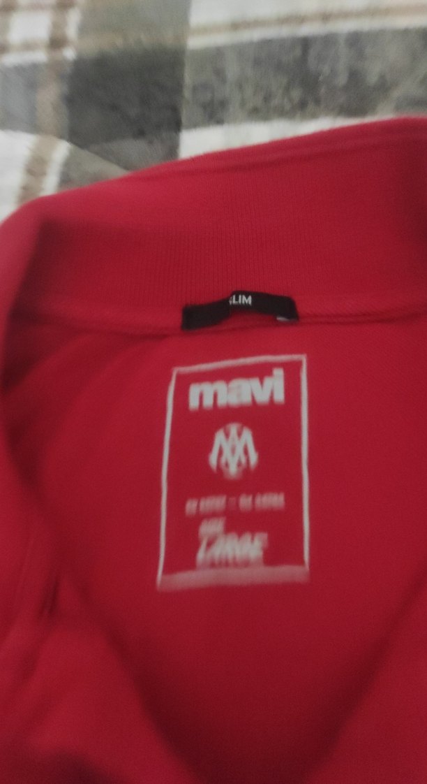 Mavi markalı, kırmızı uzun kollu, baskılı ve yapışkan detaylı, dar kesim polo tişört. Spor ve athleisure tarzına uygun, bisiklet yaka.