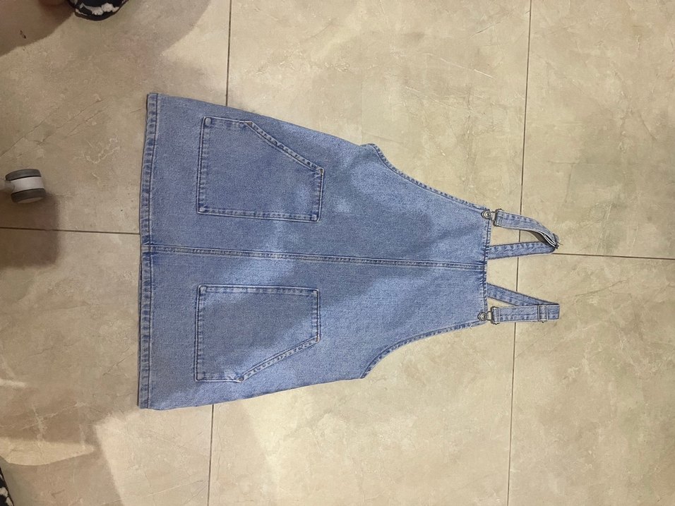 Mavi renkte, askılı, tokalı kısa denim salopet. Regular kesim, mini boy ve ön ceplidir. Günlük rahat sokak stili için uygundur.