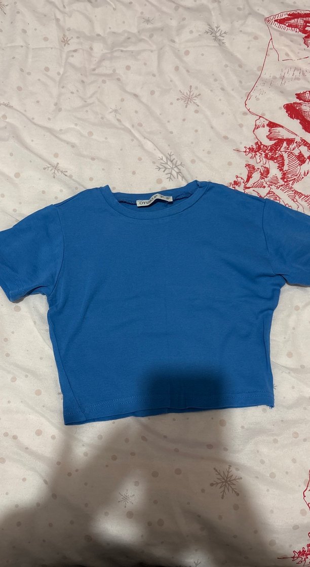 Mavi Kısa Kollu Crop Tişört