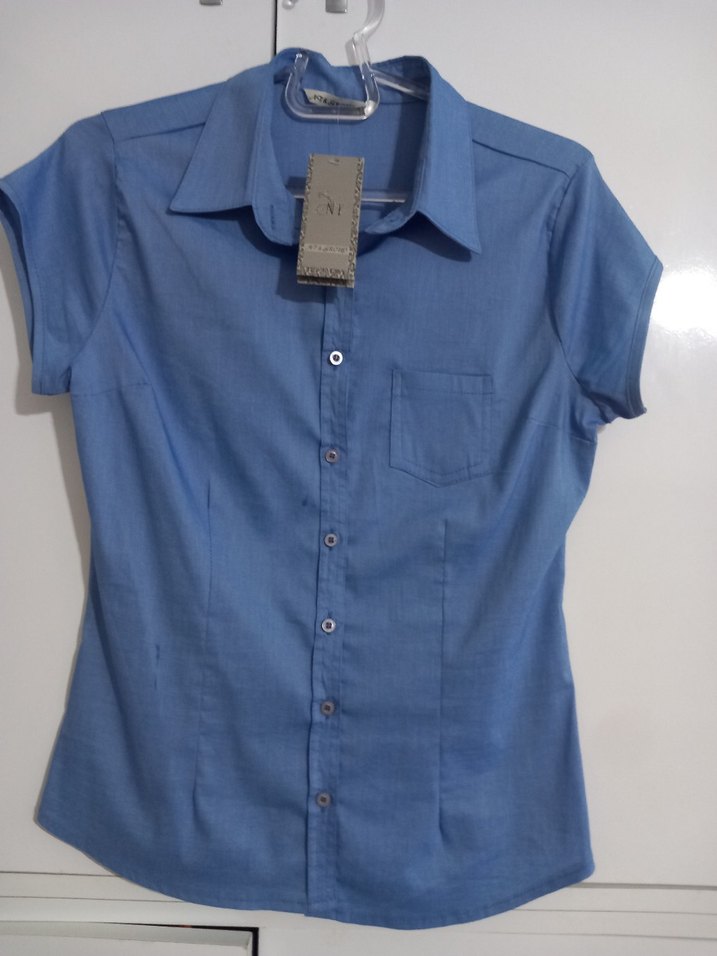 Mavi denim kumaştan, kısa kollu ve düğmeli, yakalı gömlek. Normal kesim ve göğüs cebine sahip, gündelik ve ofis kullanımı için uygun.
