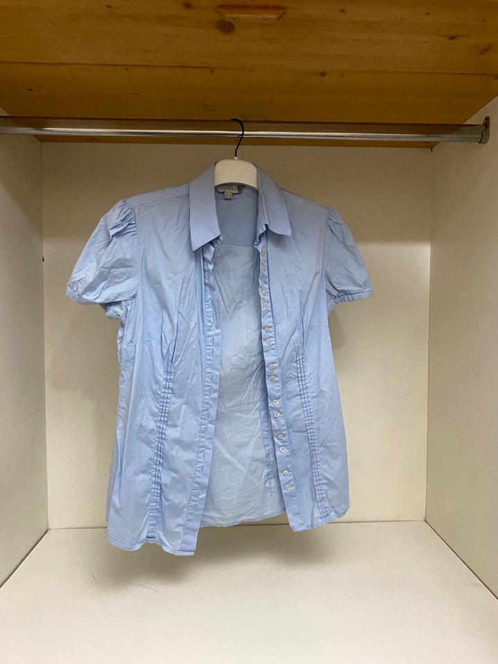 Mavi Kısa Kollu Düğmeli Kadın Gömlek