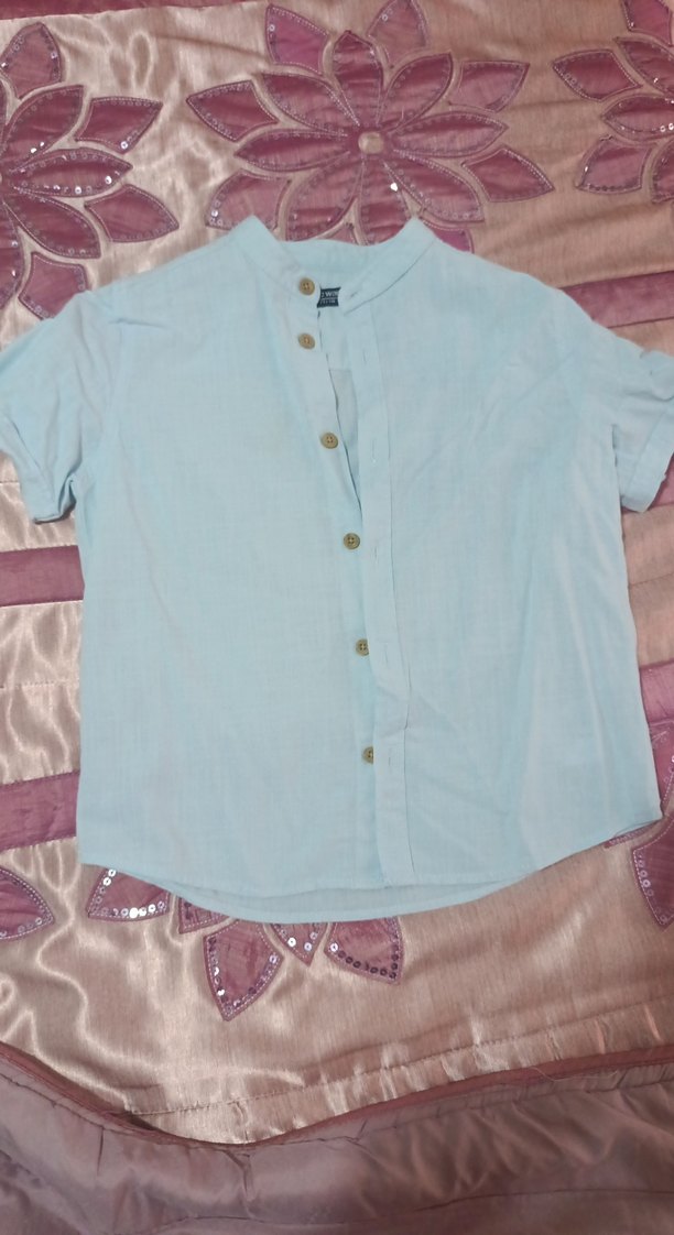Pamuk kumaştan, mavi renkte, kısa kollu ve düğmeli erkek gömleği. Salaş kesimi ve yakalı tasarımıyla rahat bir stil sunar. hiç giyilmedi.