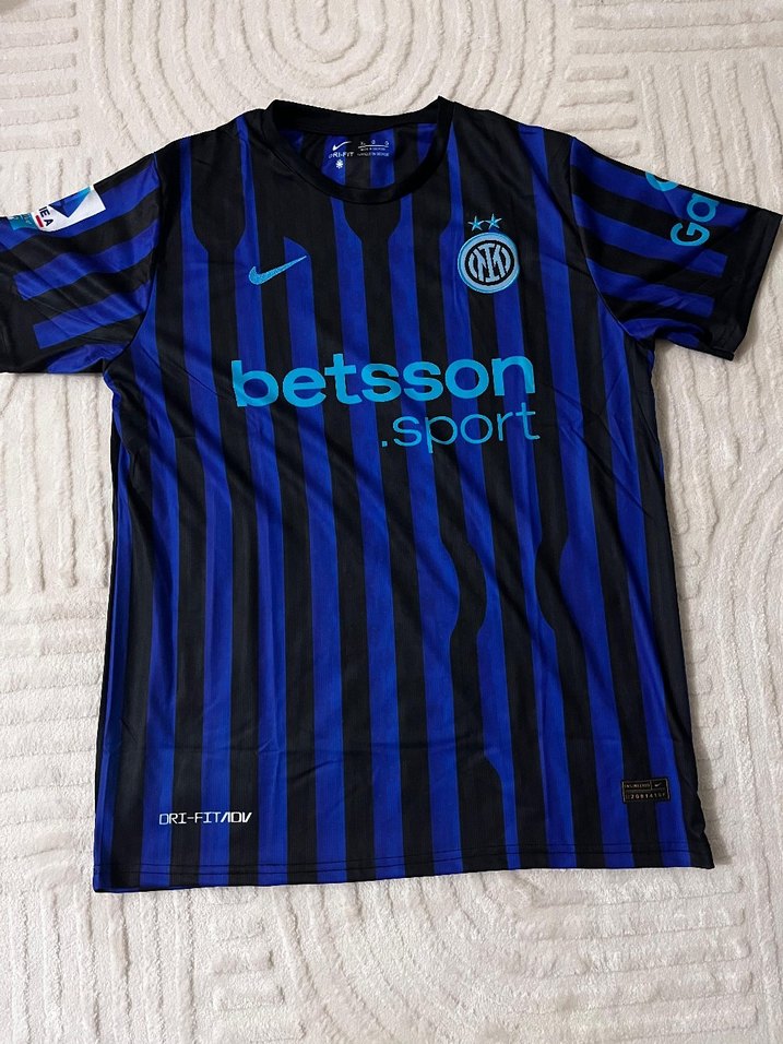 Mavi, kısa kollu, düğmeli detaylı erkek spor forması. Baskılı desenli, yuvarlak yakalı ve sentetik kumaştan üretilmiştir. Spor şıklığı için uygundur. ⚽
