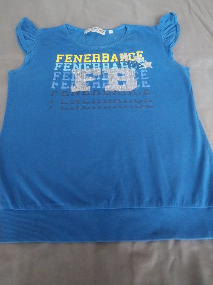 Mavi renkte, kısa kollu ve yuvarlak yaka Fenerbahçe baskılı, parlak detaylı, bol kesim ve normal boyda, yumuşak ve sıcak kumaştan üretilmiş.