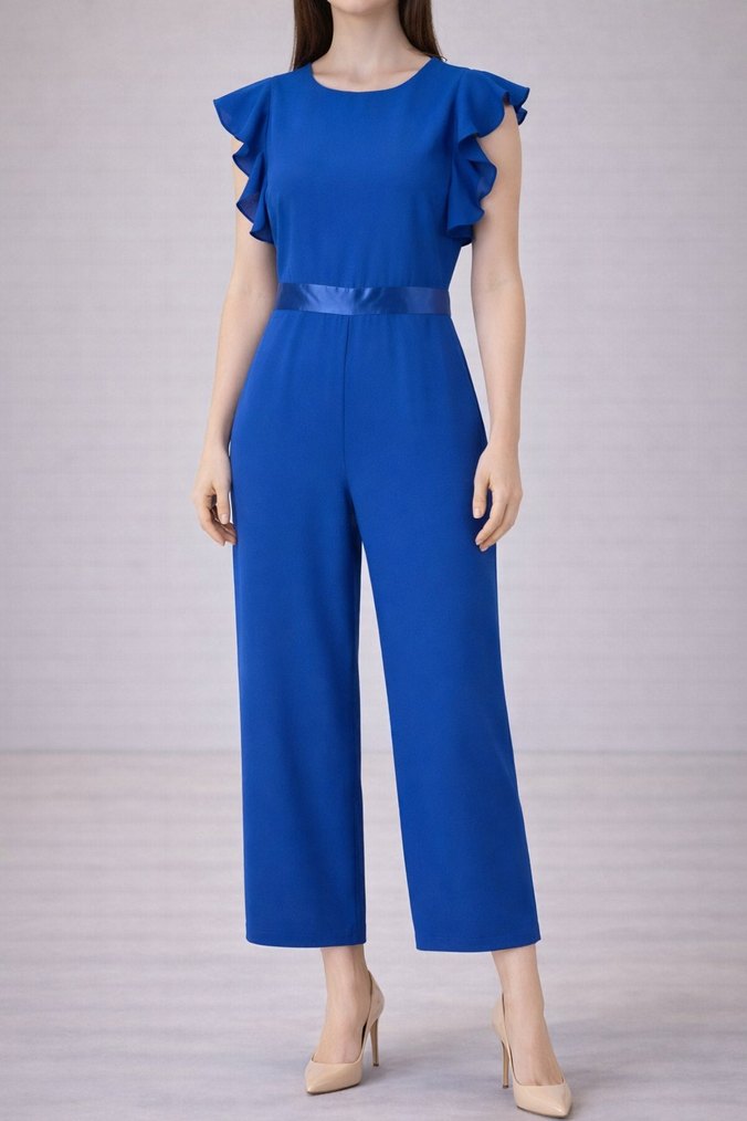 Mavi Kısa Kollu Fırfırlı Kadın Tulum
