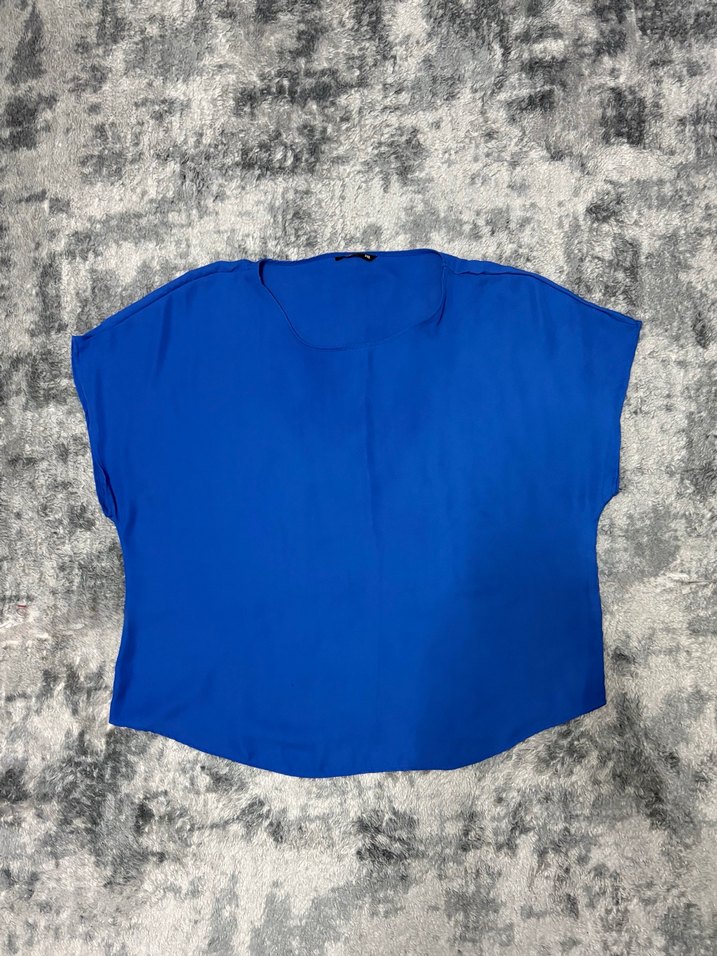 Mavi Kısa Kollu Kadın Bluz
