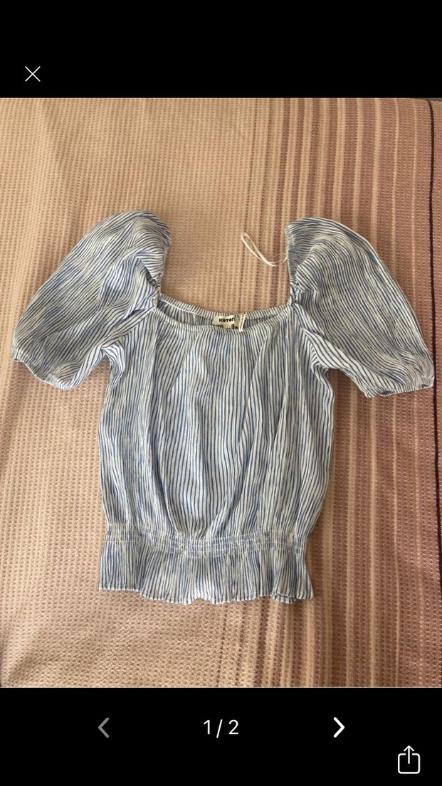 Gri renkli, kısa pilili kollu, keten kumaştan yapılmış, salaş kesim ve kayık yaka detaylı bluz. Günlük kullanıma uygun.