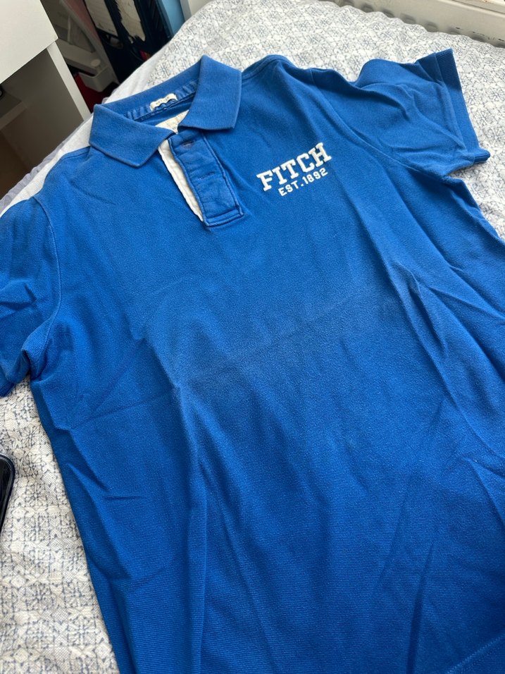 Bu mavi, vücuda oturan polo tişört, yakalı ve düğmeli. 'FITCH' baskılı ve yumuşak, sıcak kumaştan üretilmiştir. Spor ve trend günlük stil için uygundur. Orijinal. Genç çocuk için