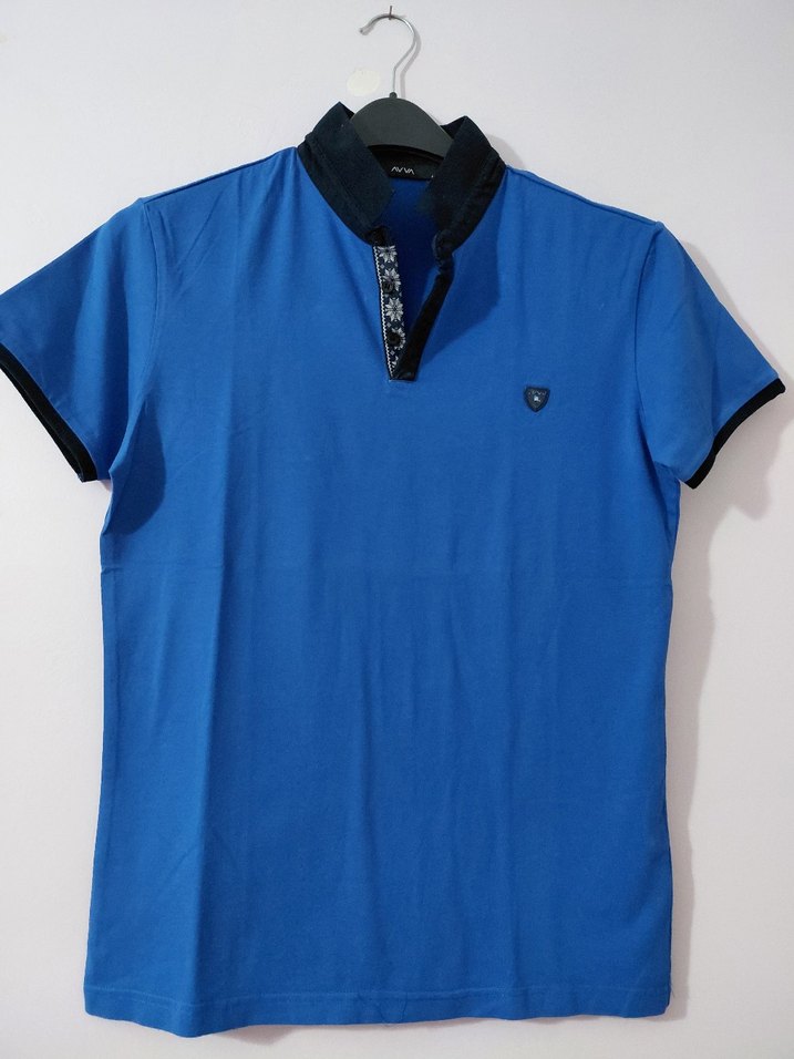 Rengi saks mavisi, siyah polo yaka ve kısa kolludur. Avva marka
