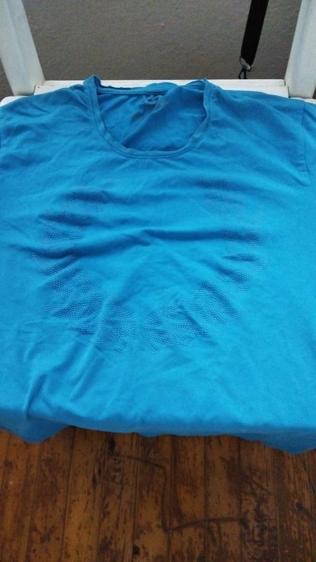 Mavi parlak renkte, kısa kollu ve yuvarlak yakalı, rahat kesim erkek tişört