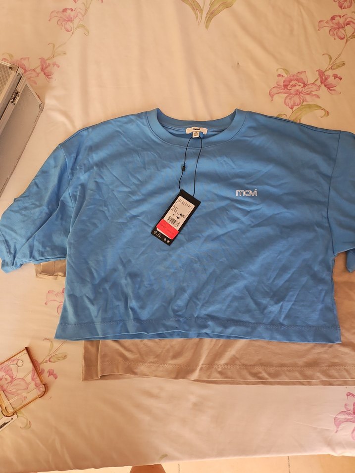 Mavi kısa kollu rahat kesim tişört