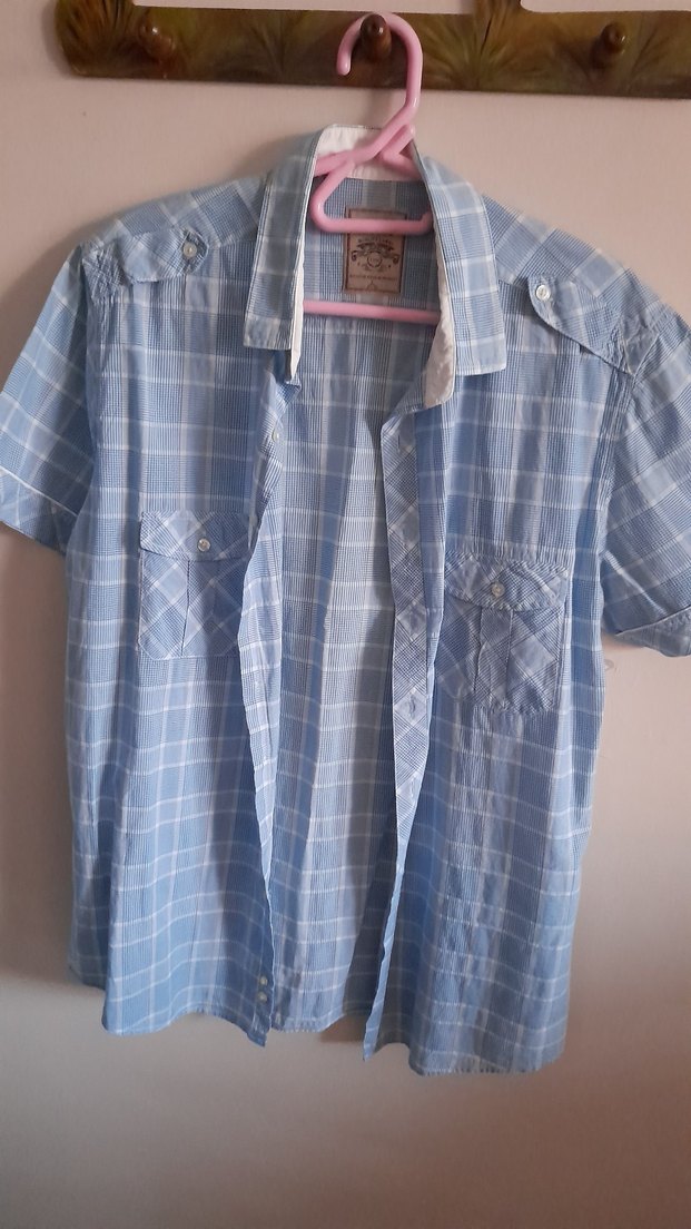 Pamuklu kumaştan, kısa kollu ve düğmeli mavi erkek gömlek. Salaş kesimi ve yakalı tasarımıyla günlük ve rahat kullanıma uygundur. Ölçüsü 55x79 cm