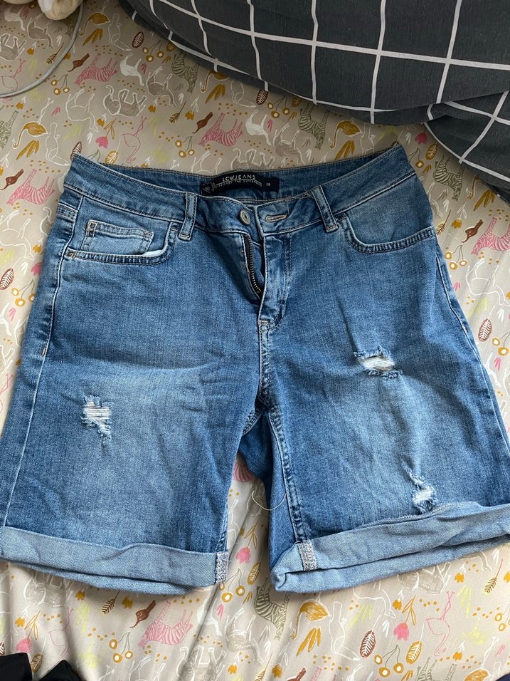 Kısa boy mavi kot şort. günlük kullanıma uygun rahat sokak stili. Pastel mavi renkte ve hafif yıpranmış görünümle.