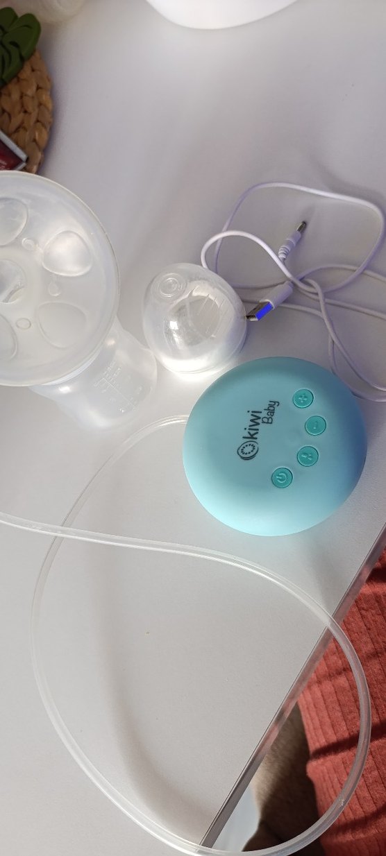 Mavi renkli Kiwi Baby göğüs pompası, kullanımı kolay düğmeler ve kompakt tasarıma sahiptir, rahat süt sağımı sağlar.Emzik kısmı sarardigi için attım çalışır durumdadir