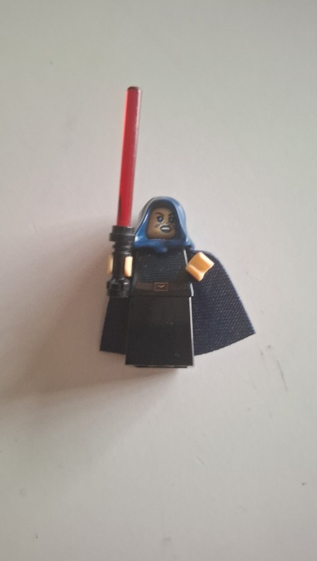 Koyu mavi kapşonlu ve pelerinli Lego figürü, kırmızı ışın kılıcı tutuyor. Detaylı yüz ifadesi ve hareketli kolları bulunuyor. ️iade kabul edilmez.#lego #starwars #dc #ninjago