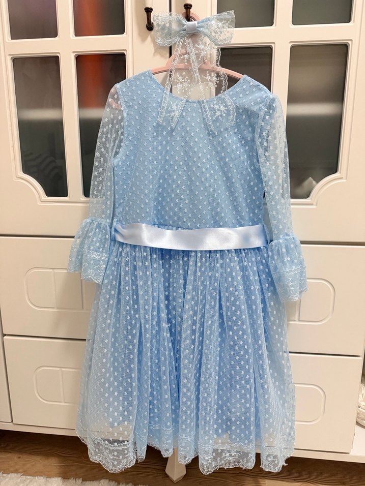 Mavi Kız Çocuk Dantelli Elbise