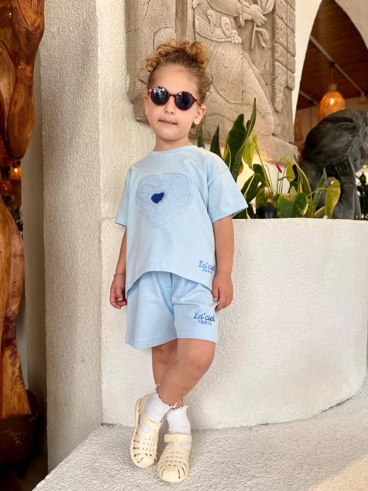 Premium yumuşacık kumaş yapısıyla şıklığı ve cool tarzı bir arada sunan harika bir tasarım. Tişört ön kısmında tüllü kalp detayı ve bel kısmının oval kesime sahip olması tasarımın öne çıkan detaylarından.. Tişört ve Şortun sol alt köşelerinde Markaya ait simli baskı logo yer alıyor.