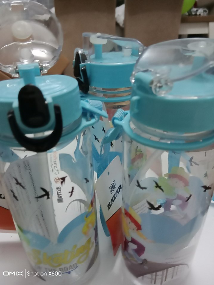Canlı renklerde, mavi kapaklı çocuk termos şişeleri, güvenli açılır kapak ve eğlenceli desenlere sahiptir. 3 adet