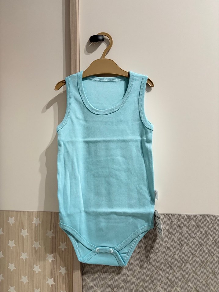 Pastel mavi renkli, kolsuz ve yuvarlak yakalı bebek body. Yumuşak sentetik kumaştan, rahat ve sade tasarım. 4-5 yaş beden mevcuttur