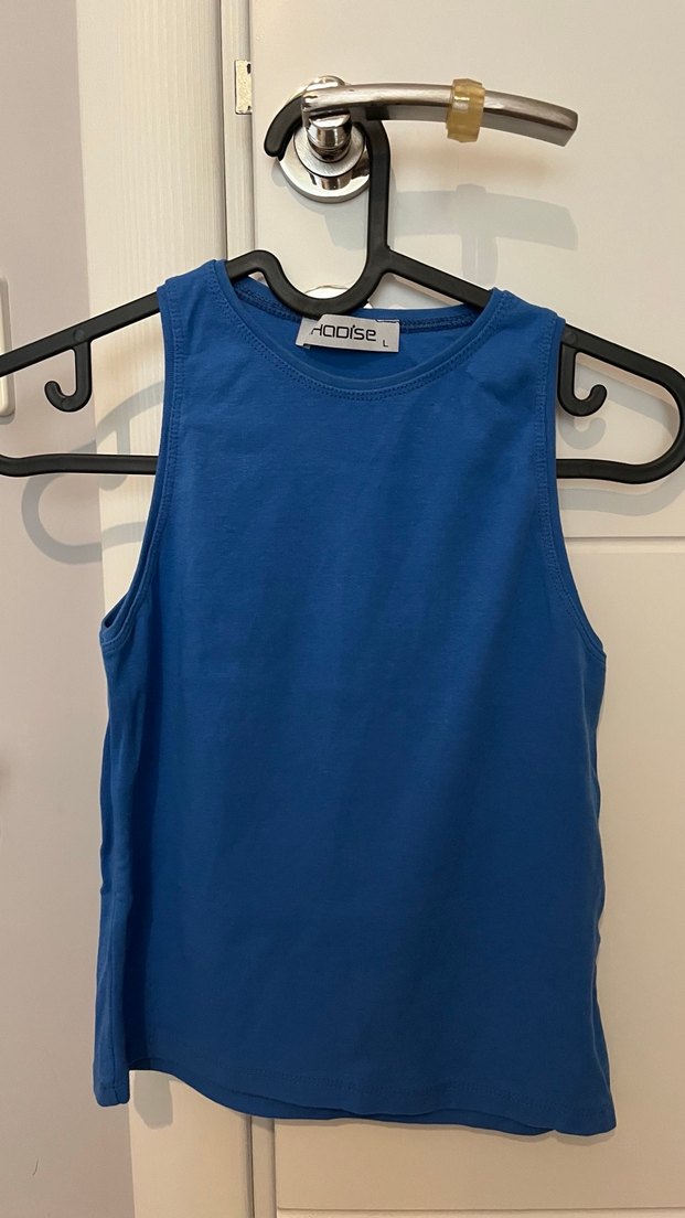 Mavi, kolsuz ve pamuklu kumaştan üretilmiş, vücuda oturan basic atlet. Normal midi uzunlukta, düz ve desensiz, spor ve sokak tarzı için uygun. ♀️