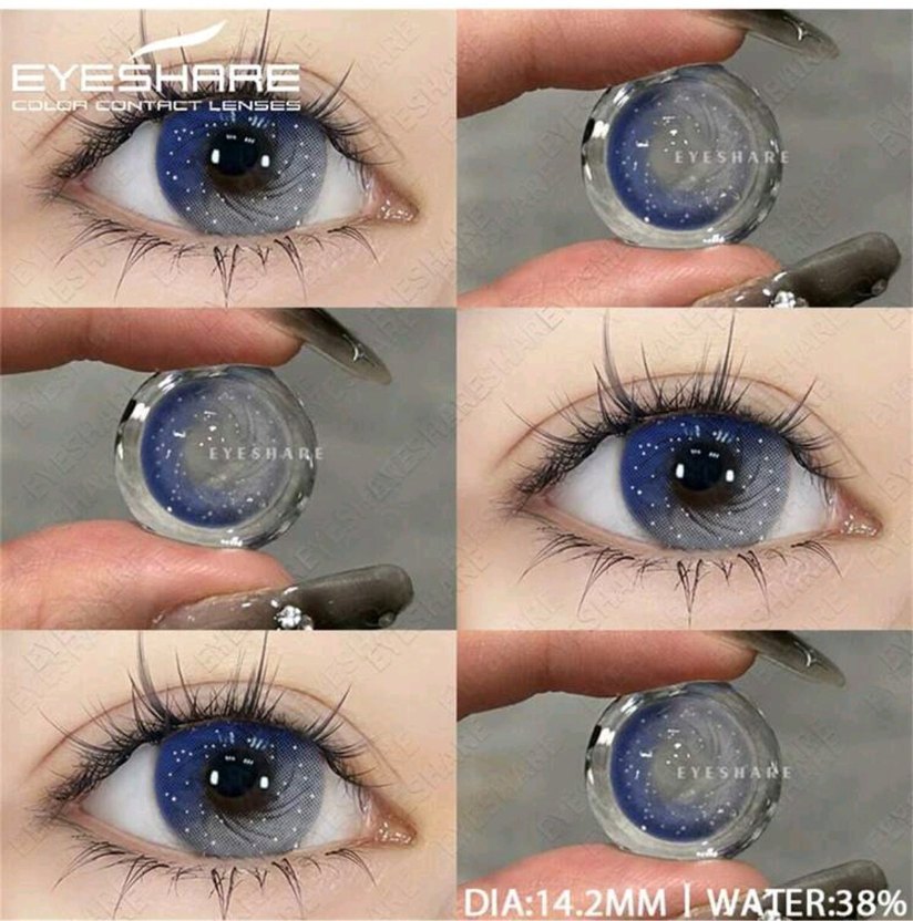 14.2 mm çapında mavi kontakt lensler, göz rengini doğal şekilde vurgular. Rahat kullanım ve estetik görünüm sunar. ️