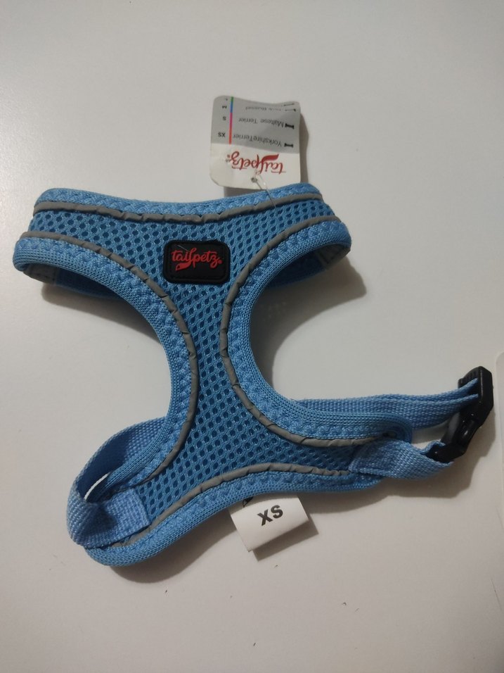 Nefes alabilen file kumaştan, ayarlanabilir kayışlı XS beden mavi köpek göğüs tasması. Küçük köpekler için uygundur.
