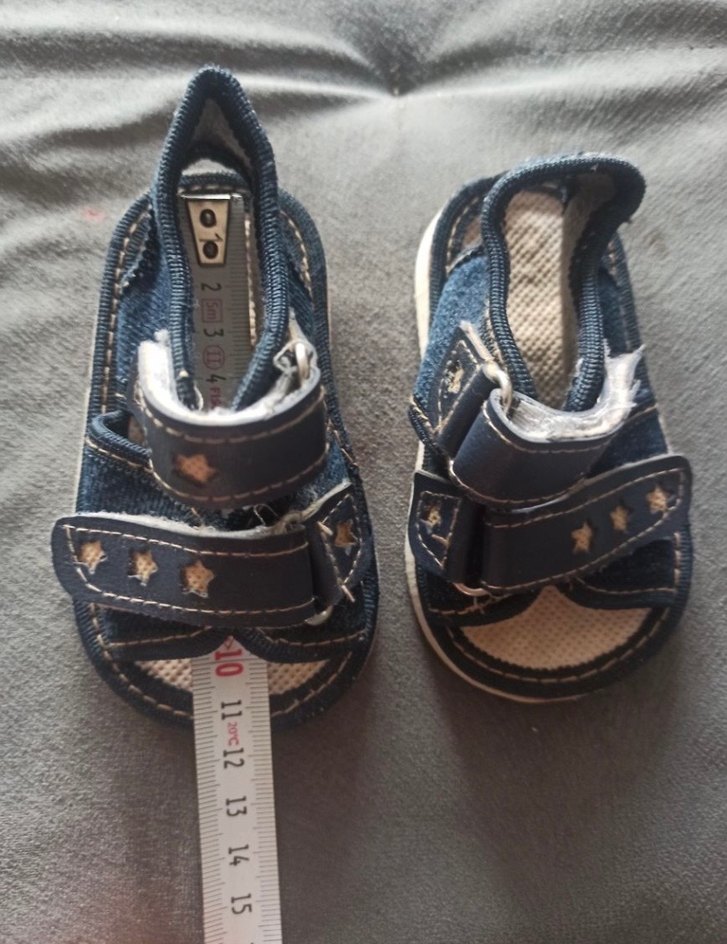 Mavi kot kumaş ve işleme detaylı, velcro bantlı beek sandalet . Sokak tarzına uygun, gri tonlarla tamamlanmış.