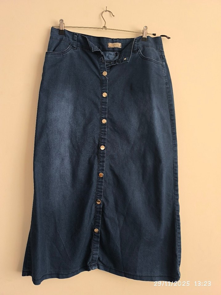 46 beden düğmeli cepli kot etek