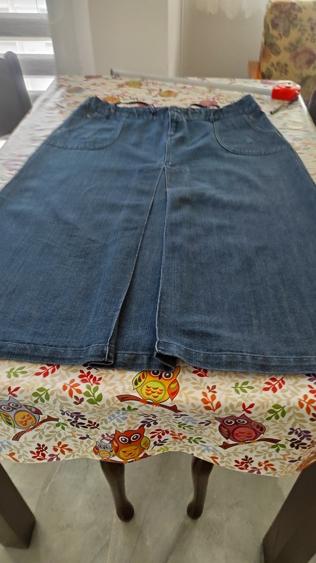 Mavi tonlarda, pileli detaylı ve ön cepli bol kesim kot etek, bohem tarzda günlük kullanıma uygun.