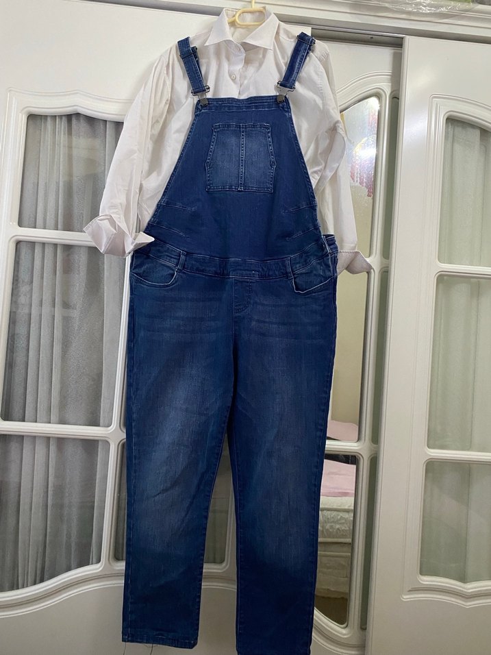Mavi Kot Midi Bol Kesim Kadın Salopet