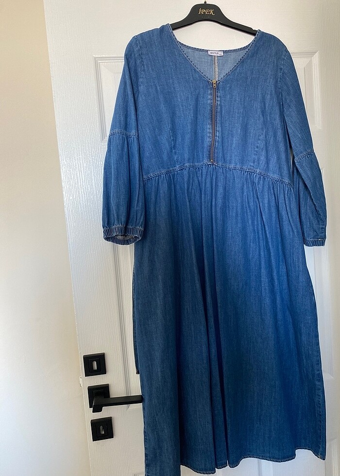 Mavi Kot midi boy elbise hamilelik acil satılık
