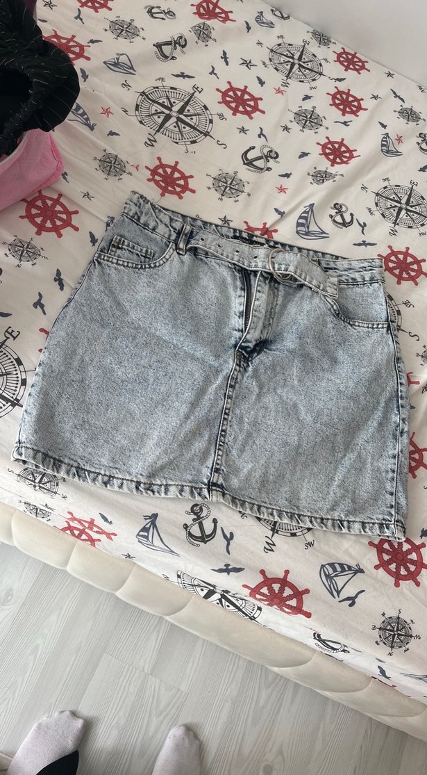 mavi Kot Mini Etek kemerli