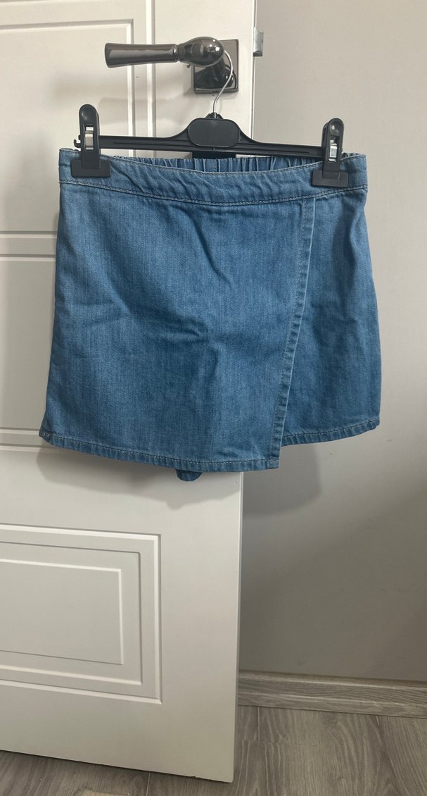 Mavi Kot Mini Şortlu etek