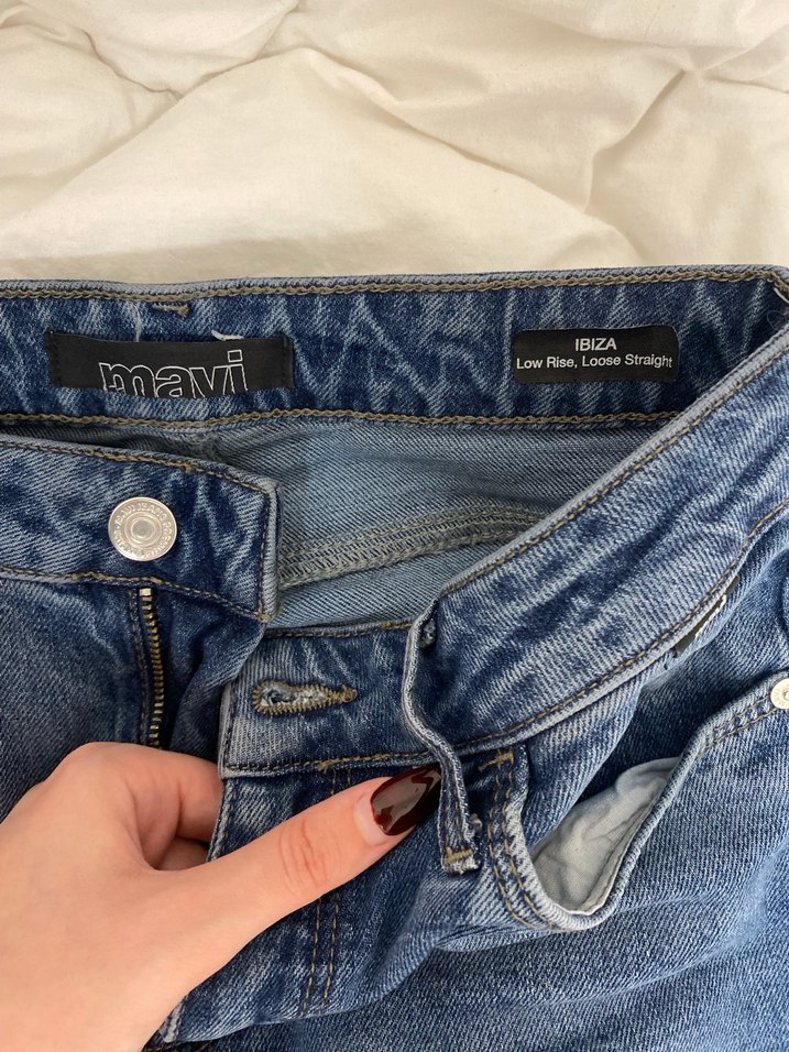 Shiny mavi renkte, düğmeli, ve boy kot pantolon. Rahat ve gündelik sokak stiline uygun.