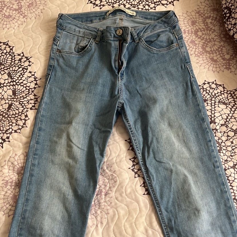 Gri tonlu mavi denimden yapılmış, dar paça boyu 30 dur. biraz kullanilmis