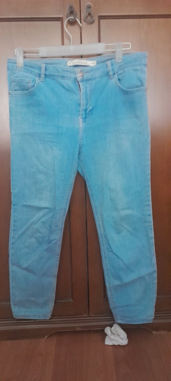 Mavi denim kumaştan, regular fit ve midi boyda, pastel tonlarda, desensiz kot pantolon. Rahat günlük kullanım ve sokak stili için uygun, zahmetsiz şıklık sunar. likrali