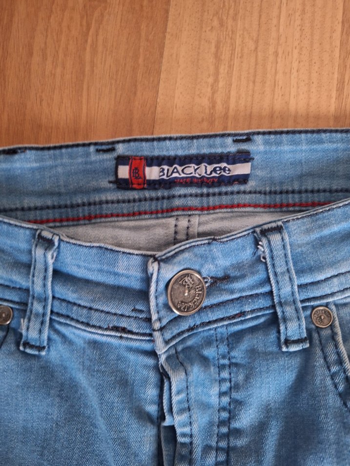 Mavi renkli, regular fit ve mini kesim kot pantolon. Tokalı ve baskılı detaylarla trend sokak stili için uygundur.