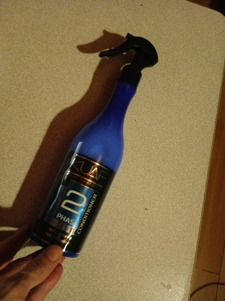 Mavi Kuaf 2 fazlı saç kremi spreyi, kolay kullanım için tetik başlıklı. Saçı etkili şekilde nemlendirir. ♀️