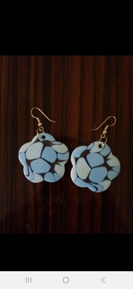 Renkli mavi desenli, kısa uzunlukta bohem tarzı küpe, fazla kullanılmadı tertemiz hafif. genişlik 1 lira genişliği gibi