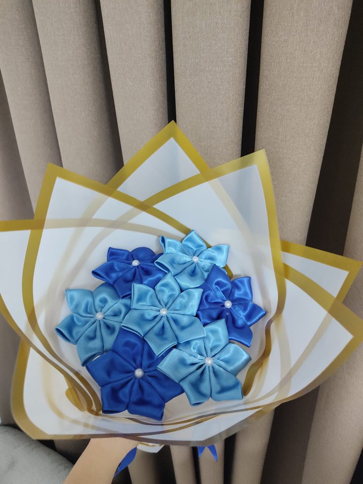 Renkli mavi kurdeleli, inci detaylı çiçek desenli buket. solmayan el yapımı ömür boyu saklanabilecek bir hediye 14 şubat yaklaşıyorrr eşinizi sevgilinizi mutlu edin