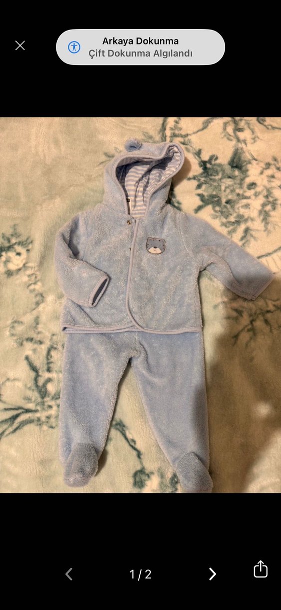 Gri renkte, yumuşak ve sıcak kumaştan yapılmış, kürk detaylı, kapüşonlu ve ayaklı bebek erkek tulumu. Sokak stili tasarımına sahip.