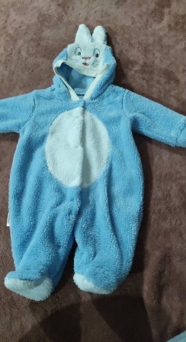 Yumuşak mavi renkli, kürk detaylı ve hayvan yüzü desenli kapüşonlu bebek tulumu. Sıcak tutan yumuşak kumaştan üretilmiştir. ❄️