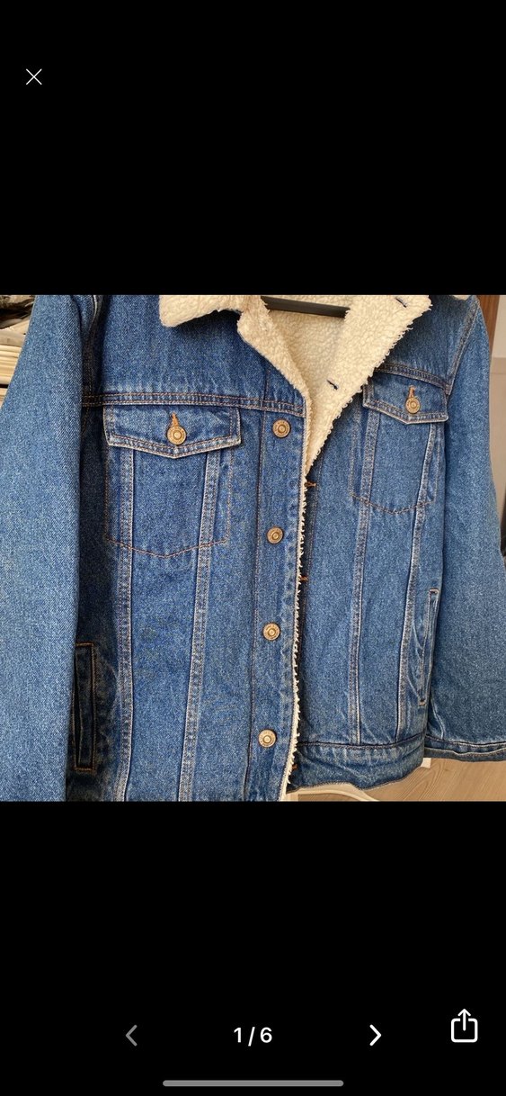 mavi denim ceket, normal kesim ve uzun kolludur. Kürklü iç detayları ve düğmeli kapamasıyla rahat ve şık bir görünüm sunar.✨