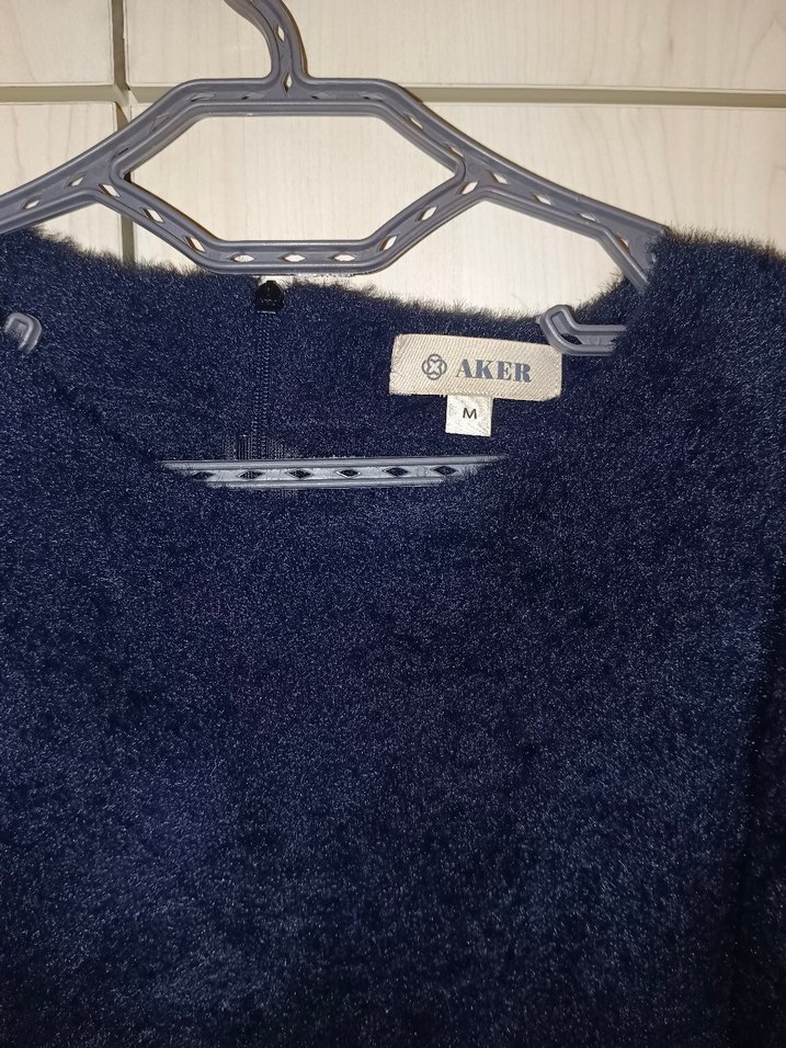 AKER markalı koyu mavi, kürklü detaylı, uzun kollu ve normal boyda kadın sweatshirt. Yumuşak ve sıcak kumaştan, günlük kullanıma uygun şık bir parça.